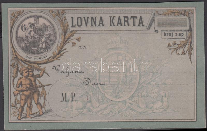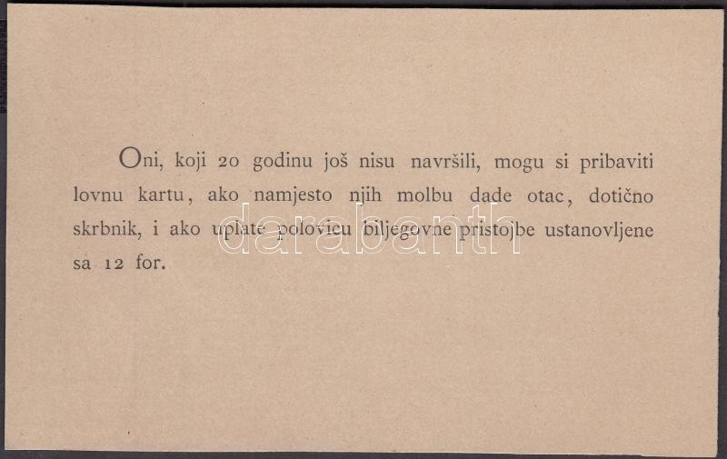 cca 1890 Horvát nyelvű kitöltetlen vadászjegy https://www.darabanth.com/de/218-Fernauktion/218.0/Andere-Sammelgebiete/Dokument~200027/cca-1890-Horvat-nyelvu-kitoltetlen-vadaszjegy~II929203