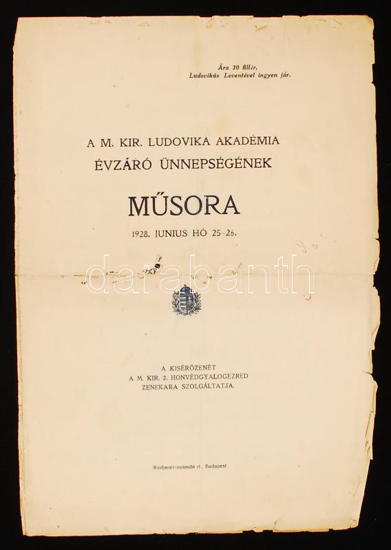 1928 Meghívó a Magyar Királyi Ludovika Akadémia évzáró ünnepségének mű... https://www.darabanth.com/de/218-Fernauktion/218.0/Andere-Sammelgebiete/Drucksachen~200010/1928-Meghivo-a-Magyar-Kiralyi-Ludovika-Akademia-evzaro-unnepsegenek-musorara-reszletes~II927767