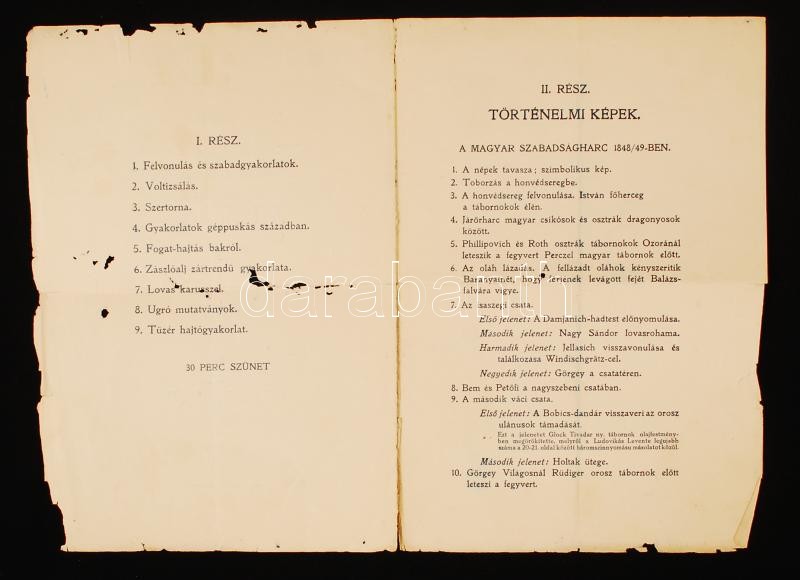 Beschreibung: 1928 Meghívó a Magyar Királyi Ludovika Akadémia évzáró ünnepségének műsorára, részletes programmal.