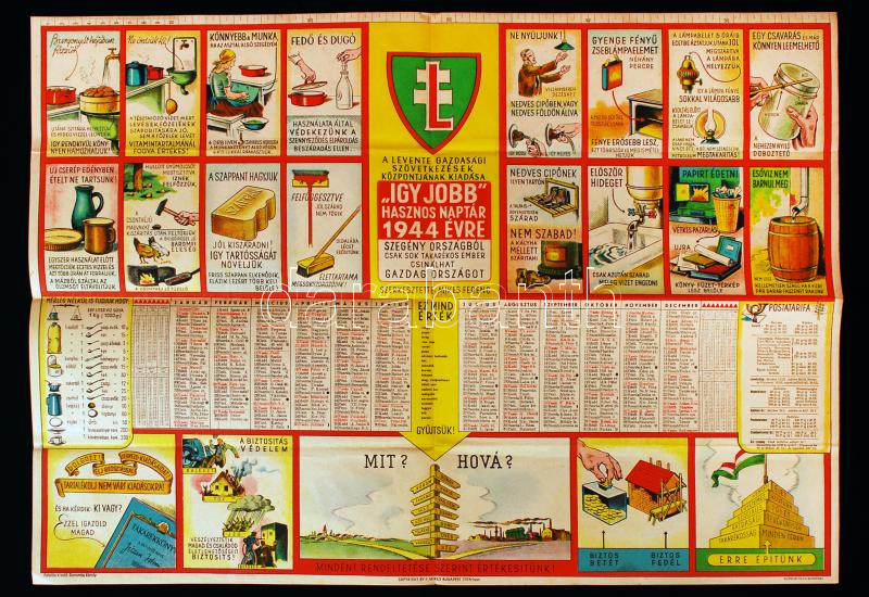 Beschreibung: 1935 A Levente Gazdasági Szövetkezések Központjának "hasznos" naptára az 1944. évre, 58x41 cm