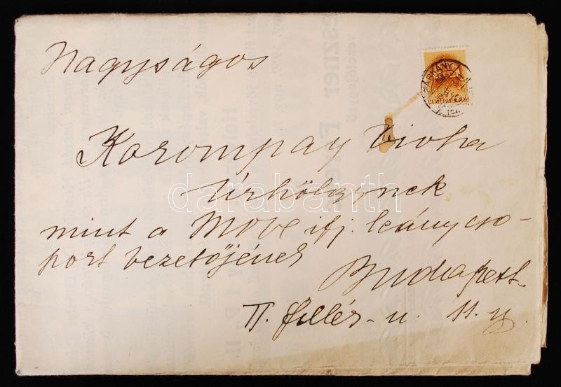 1939 Párkány: A Felvidék felszabadulása egy éves évfordulójának ünnepi megemlékezését reklámozó plakát. Az ünnepi műsorral. Postán elküldve a műsor egyik számaként elszavalt vers szerzőjének Korompay Violának. Jó állapotban / 1939 Poster for the commemoration of the entry of the Hungarian troops to Slovakia 60x90 cm