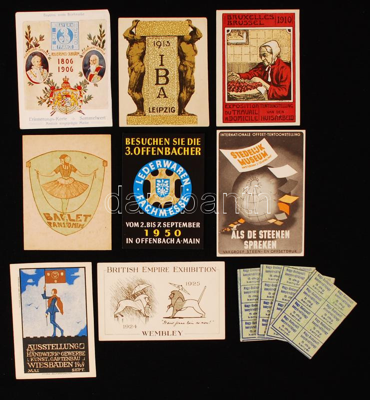 cca 1900-1950 12 darabos vegyes aprónyomtatvány-tétel: kiállítás szóró... https://www.darabanth.com/de/218-Fernauktion/218.0/Andere-Sammelgebiete/Drucksachen~200010/cca-1900-1950-12-darabos-vegyes-apronyomtatvany-tetel-kiallitas-szorolapok-kenyerjegyek-~II929268