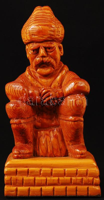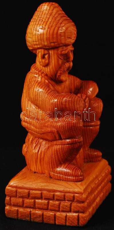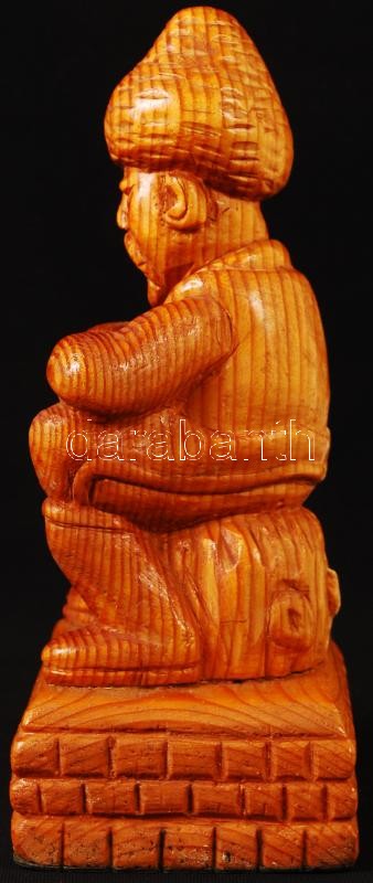 Beschreibung: Ülő paraszt, faragott fa szobor, m: 26 cm