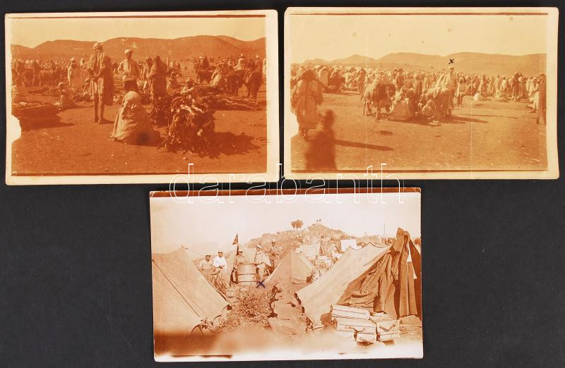 Beschreibung: 1928 Marokkó magyar csapat tábora és piac 3 fotó / Hungarian camp and market in Maroc