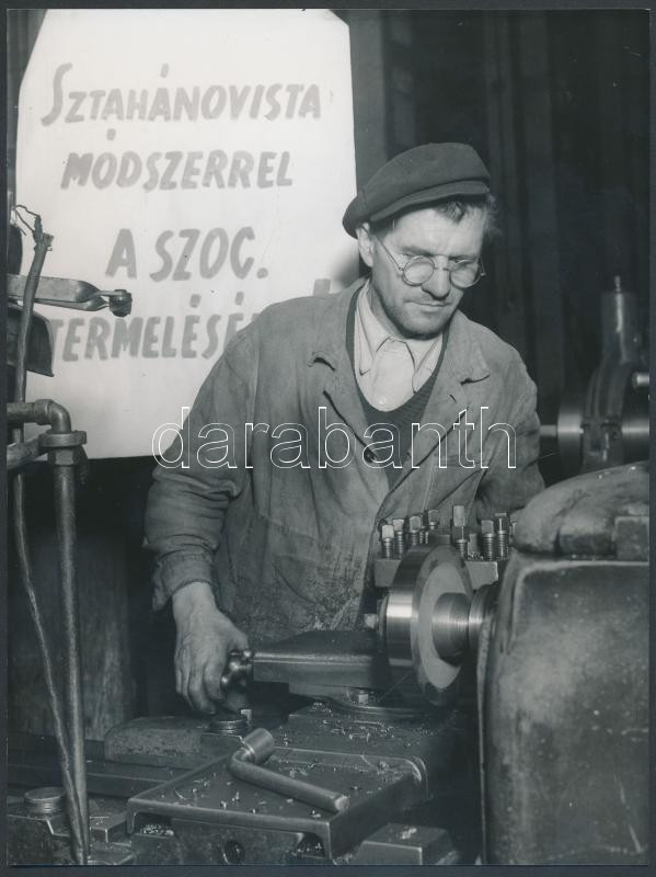 1949 Sztahanovista esztergályos a MÁVAG-ban, sajtófotó, 24x18 cm https://www.darabanth.com/de/218-Fernauktion/218.0/Andere-Sammelgebiete/Foto~200005/1949-Sztahanovista-esztergalyos-a-MAVAG-ban-sajtofoto-24x18-cm~II925506