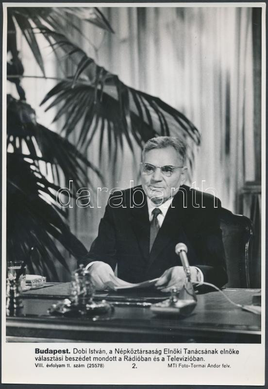 1967-1968 MTI fotók Dobi Istvánról (1898-1968) az Elnöki Tanács elnöké... https://www.darabanth.com/de/218-Fernauktion/218.0/Andere-Sammelgebiete/Foto~200005/1967-1968-MTI-fotok-Dobi-Istvanrol-1898-1968-az-Elnoki-Tanacs-elnokerol-2-db-sajtofoto-~II925524
