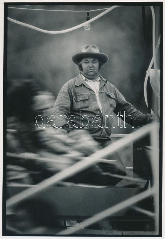 Beschreibung: cca 1975 Körtvélyesi László: Búcsújáró vásári körhintás, pecséttel jelzett vintage szociofotó, 22x15 cm