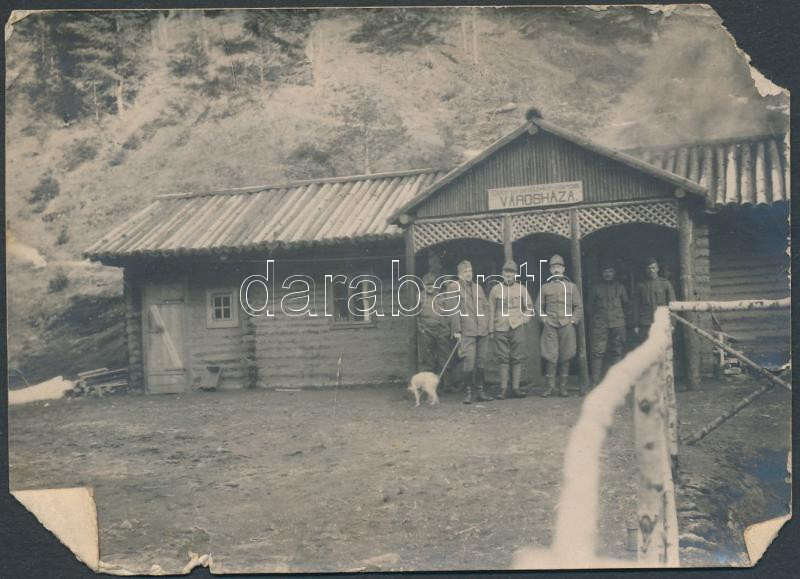 Beschreibung: cca 1916 Érdekes frontfelvétel. Barakk Debrecen sz. kir. város városháza felirattal 12x9 cm