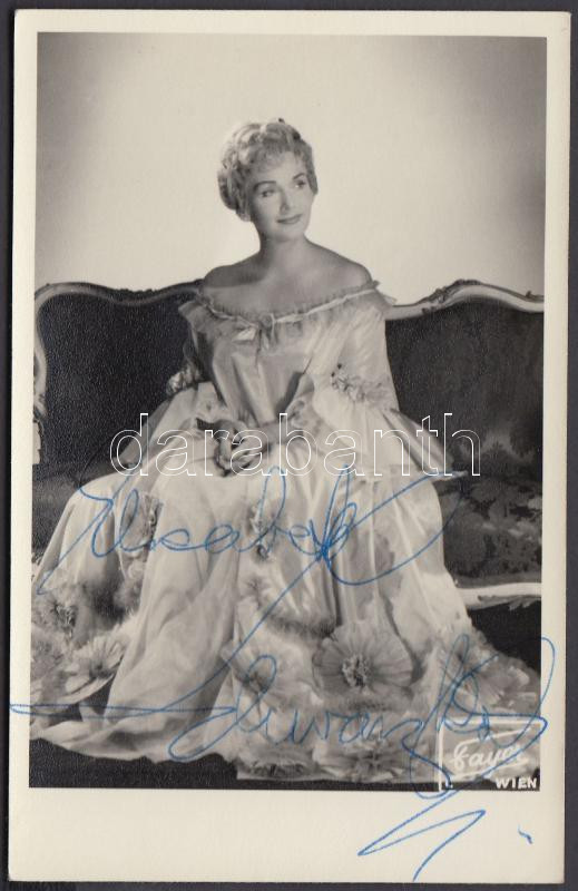 Beschreibung: Elisabeth Schwarzkopf (1915-2006) német operaénekesnő aláírása az őt ábrázoló fotón