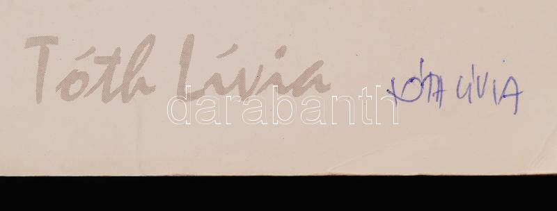 Tóth Lívia nemezművész aláírása a műveit bemutató színes nyomtatványok... https://www.darabanth.com/de/218-Fernauktion/218.0/Andere-Sammelgebiete/Signatur~200029/Toth-Livia-nemezmuvesz-alairasa-a-muveit-bemutato-szines-nyomtatvanyokon-5-db~II930087