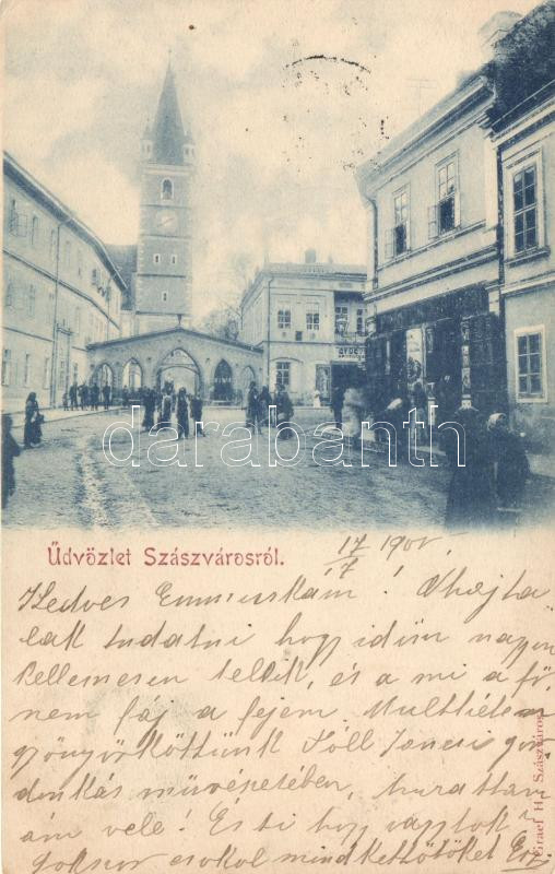 1900 Szászváros, templom, gyógyszertár / church, pharmacy https://www.darabanth.com/de/218-Fernauktion/218.0/Ansichtskarten/Siebenburgen~400006/1900-Szaszvaros-templom-gyogyszertar-church-pharmacy~II860183