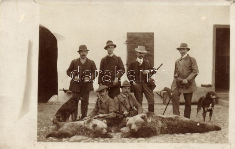 1913 Alsószabadi, vadásztársaság elejtett medvékkel, vadászkutyák / hu... https://www.darabanth.com/de/218-Fernauktion/218.0/Ansichtskarten/Slowakei~400007/1913-Alsoszabadi-vadasztarsasag-elejtett-medvekkel-vadaszkutyak-hunters-hunted-bears-hu~II929919