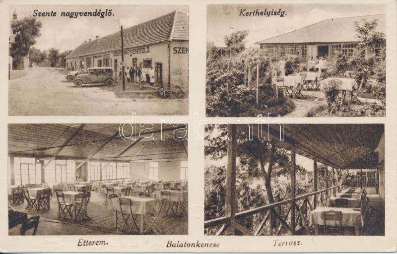 Beschreibung: Balatonkenese, Szente Nagyvendéglő, Kerthelyiség, étterem, terasz, automobil