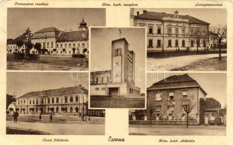 Csorna, Premontrei rendház, Római katolikus templom és plébánia, Leány... https://www.darabanth.com/de/218-Fernauktion/218.0/Ansichtskarten/Ungarn~400005/Csorna-Premontrei-rendhaz-Romai-katolikus-templom-es-plebania-Leanyinternatus-Elemi-fiui~II928029