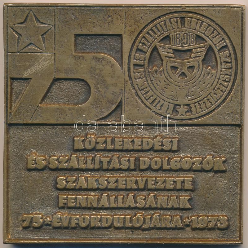 Beschreibung: 1973. "Közlekedési és Szállítási Dolgozók Szakszervezete fennállásának 75. évfordulójára" Br plakett (93x93,5mm) T:2