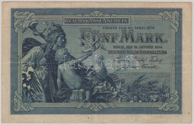 Német Birodalom / Császárság 1904. 5M hatjegyű sorszámmal T:III