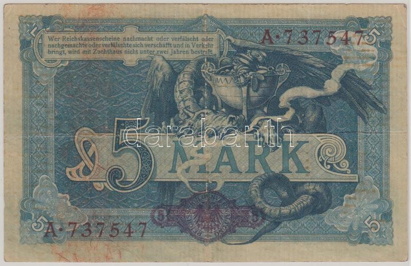 Beschreibung: Német Birodalom / Császárság 1904. 5M hatjegyű sorszámmal T:III