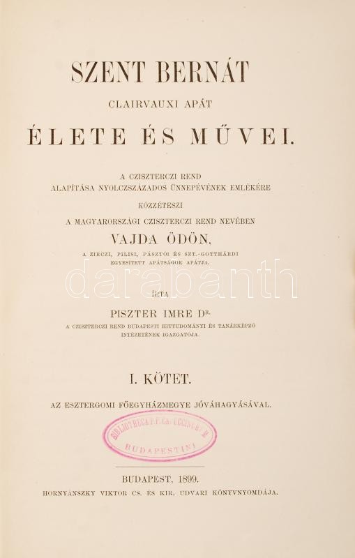 Piszter Imre: Szent Bernát clairvaux-i apát élete és művei. 1. köt. Bp... https://www.darabanth.com/de/219-Fernauktion/219.0/Andere-Sammelgebiete/Bucher-Religion~500025/Piszter-Imre-Szent-Bernat-clairvaux-i-apat-elete-es-muvei-1-kot-Bp-1899-Hornyanszky-Vi~II933693