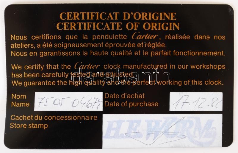 1982 Cartier luxus ébresztőóra. Quartz, elem nélkül, díszdobozban, ere... https://www.darabanth.com/de/219-Fernauktion/219.0/Andere-Sammelgebiete/Flohmarkt~500020/1982-Cartier-luxus-ebresztoora-Quartz-elem-nelkul-diszdobozban-eredeti-papirokkal-tanusC3~II936588