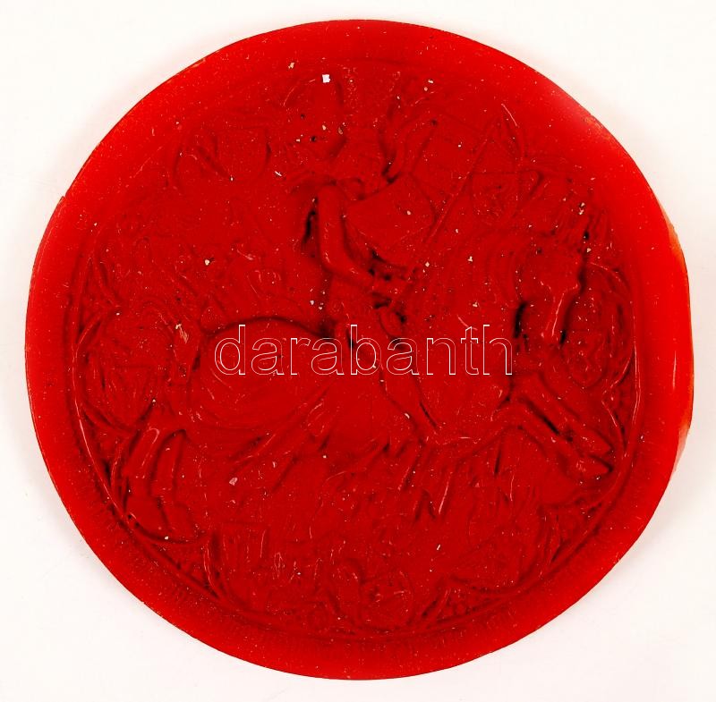 Beschreibung: Középkori királyi viaszpecsét lenyomat modern, a hőtől kissé elhajlott változata 13 cm