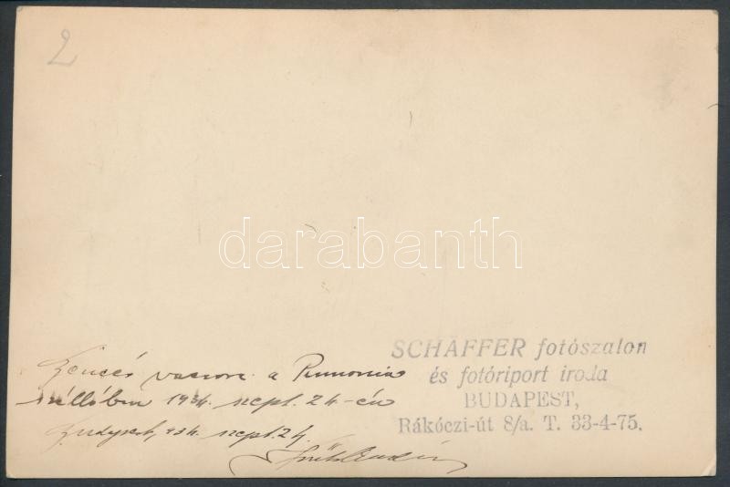 Beschreibung: 1934. szeptember 24. Schäffer fotószalon: Bencés vacsora a Pannónia Szállóban, Szűts András aláírásával, 11,5x17 cm