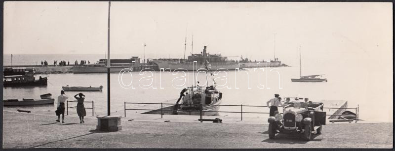 Beschreibung: 1936 Sevcsik Jenő (1899-1996): Siófoki móló, aláírt vintage fotóművészeti alkotás, 9x24 cm