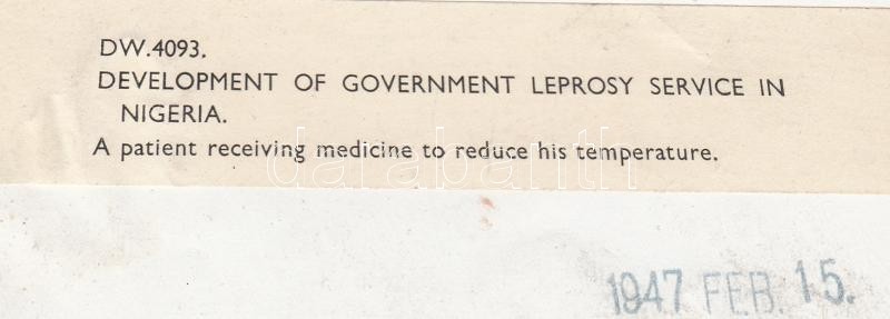 Beschreibung: 1947 Afrika, Nigéria, lepra telep, betegek gyógyszerezése, angolul feliratozott fotó, 20x15 cm