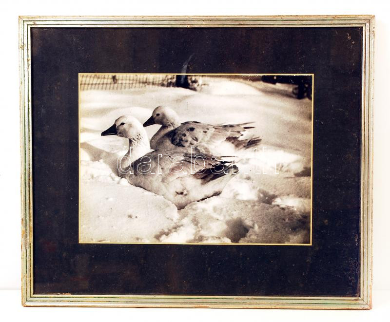 Beschreibung: cca 1940 Libák a hóban, hátoldalán olvashatatlan feliratozás, apró felületi sérülésekkel, üvegezett keretben, fotó 28×28 cm, keret 47×57 cm
