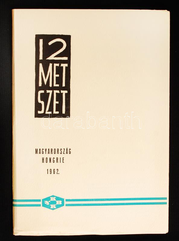 1962 12 metszet magyar grafikusoktól, benne: Gross Arnold, Menyhárt József, Bordás Ferenc, Gácsi Mihály, Drahos István, Varga Gyula, Varga Nándor Lajos, Fery Antal, Trojan Marian József, Diskay István, Strebencz Károly, Stettner Béla. Sorszámozott 254/500