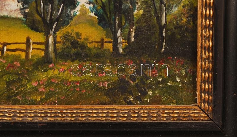 Beschreibung: Balogh jelzéssel: Pirkadat. Olaj, vászon, keretben, 15×22 cm