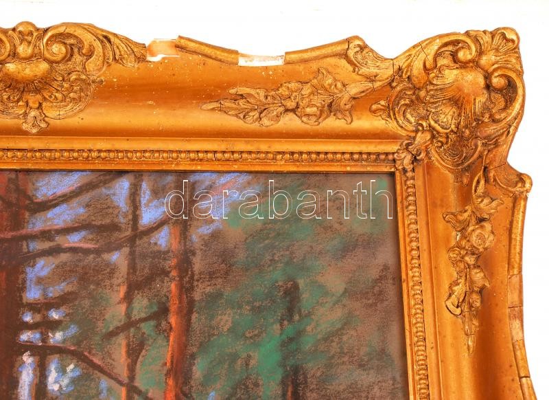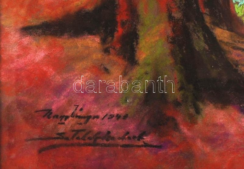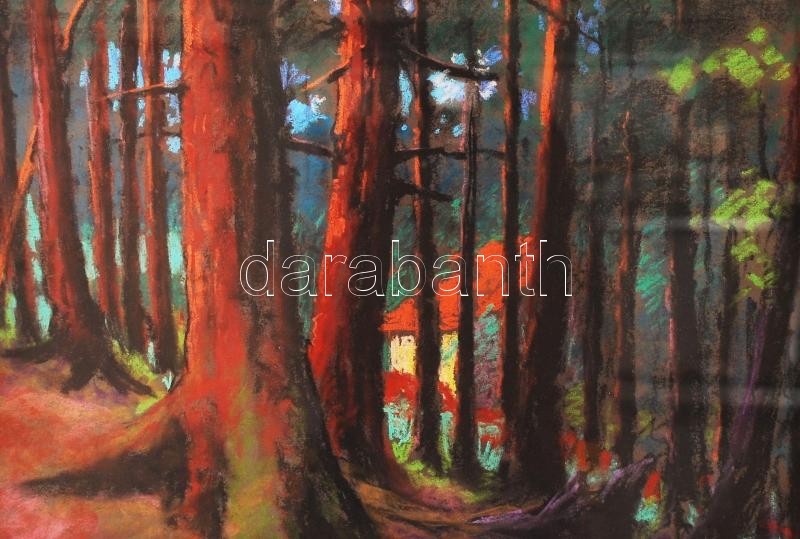 Beschreibung: Sztelek Norbert (1884-1956): Ház a fák között. Pasztell, karton, keretben, 60×50 cm