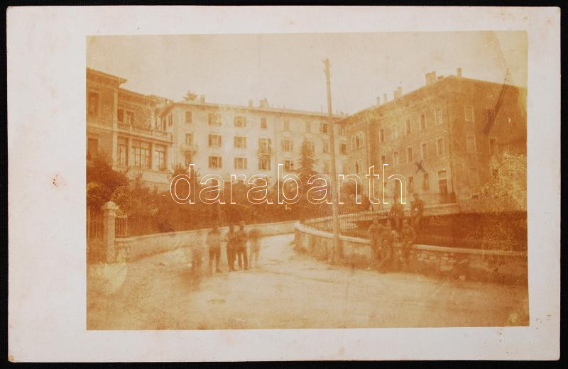 1916 K.u.k leichte Kraftwagenkolonne, katonák a kászárnyánál, hátoldalon feliratozva, fotólap, 14x9 cm /
