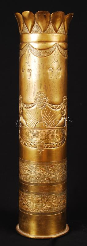 cca 1916 ágyúhüvelyből készült nagyméretű díszített padlóváza, jelzett... https://www.darabanth.com/de/219-Fernauktion/219.0/Andere-Sammelgebiete/Militaria~500007/cca-1916-agyuhuvelybol-keszult-nagymeretu-diszitett-padlovaza-jelzett-m51-cm~II900953