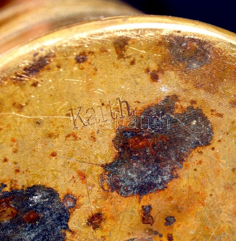 Beschreibung: cca 1916 ágyúhüvelyből készült nagyméretű díszített padlóváza, jelzett, m:51 cm