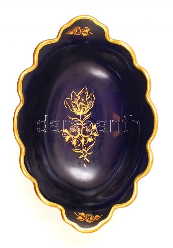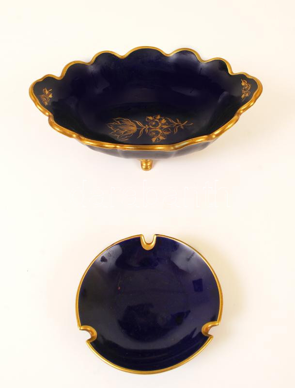 Beschreibung: Unterweissbach Echt Kobalt kézzel festett porcelán asztali kínáló és hamutartó tál, hibátlan, jelzett, d: 10 cm; 24x14x6 cm