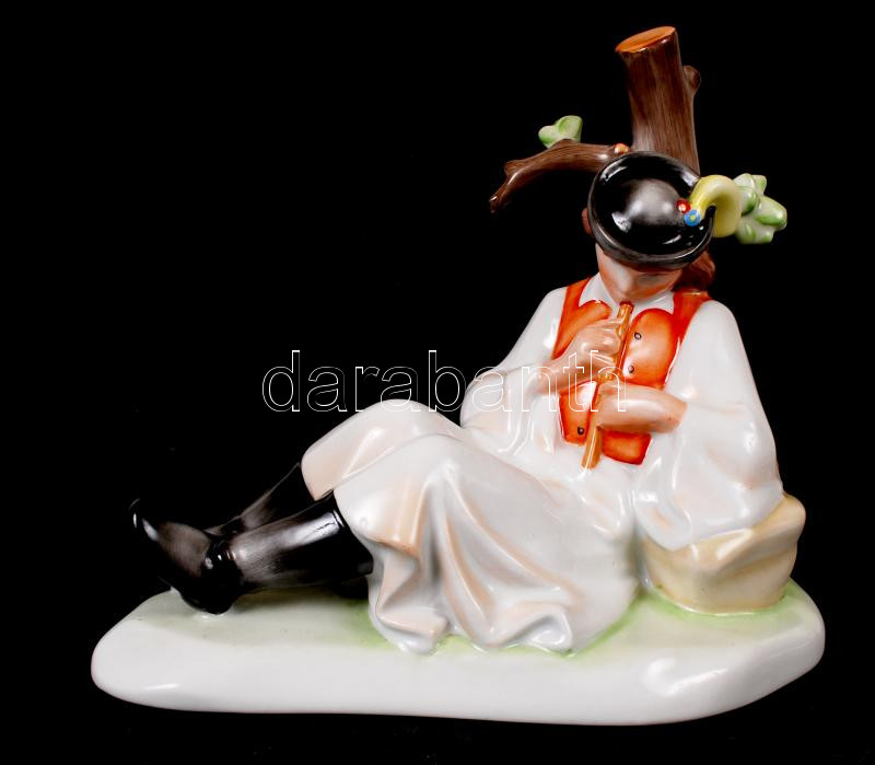 Beschreibung: Zsolnay furulyázó juhász, kézzel festett, jelzett, hibátlan, h:21 cm, m:19 cm