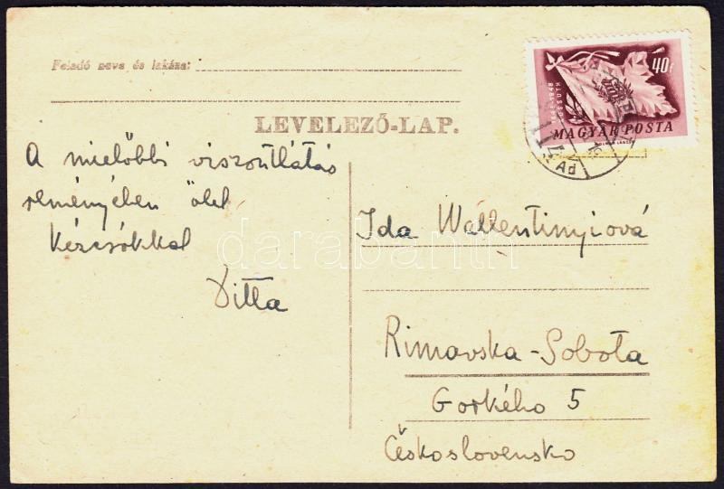 Beschreibung: 1949 Bartók Béláné Pásztory Edith "Ditta" (1903-1982) üdvözlő sorai és aláírása keresztanyjának írt levelezőlapon.