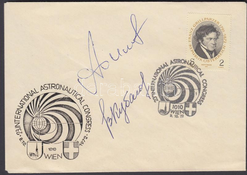 1972 Nemzetközi Asztronautikai Szövetség Kongresszusa alkalmi levél Kubaszov és egy másik szovjet űrhajós autogrammjával / Autograph signatures of Russian astronauts