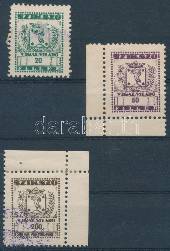 Beschreibung: 1948 Szikszó városi illetékbélyeg Vigadalmi adó II. 20f, 50f, 200f