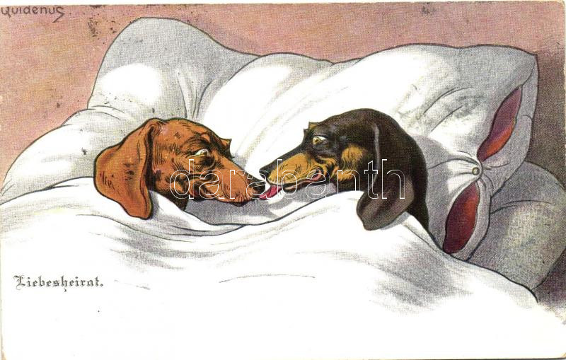 Liebeheirat, dogs, love match, No. 3644. s: Quidenus https://www.darabanth.com/de/219-Fernauktion/219.0/Ansichtskarten/Hunde~500089/Liebeheirat-dogs-love-match-No-3644-s-Quidenus~II933206