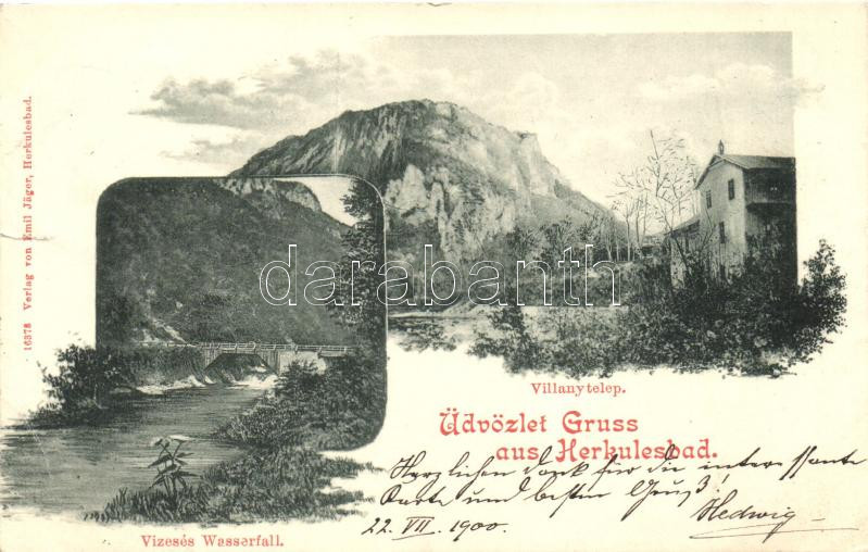 Herkulesfürdő, villanytelep; kiadja Emil Jager / power plant, waterfal... https://www.darabanth.com/de/219-Fernauktion/219.0/Ansichtskarten/Siebenburgen~300006/Herkulesfurdo-villanytelep-kiadja-Emil-Jager-power-plant-waterfall-small-tear~II934607