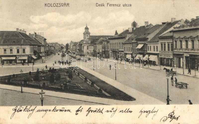 Kolozsvár, Deák Ferenc utca, Wolf J. gyógyszertára, Stein Z. üzlete, T... https://www.darabanth.com/de/219-Fernauktion/219.0/Ansichtskarten/Siebenburgen~300006/Kolozsvar-Deak-Ferenc-utca-Wolf-J-gyogyszertara-Stein-Z-uzlete-Tamasi-Tamas-es-fia-uz~II937409