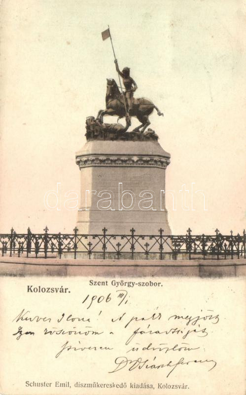 Kolozsvár, Szent György szobor, kiadja Schuster Emil / statue https://www.darabanth.com/de/219-Fernauktion/219.0/Ansichtskarten/Siebenburgen~300006/Kolozsvar-Szent-Gyorgy-szobor-kiadja-Schuster-Emil-statue~II937470