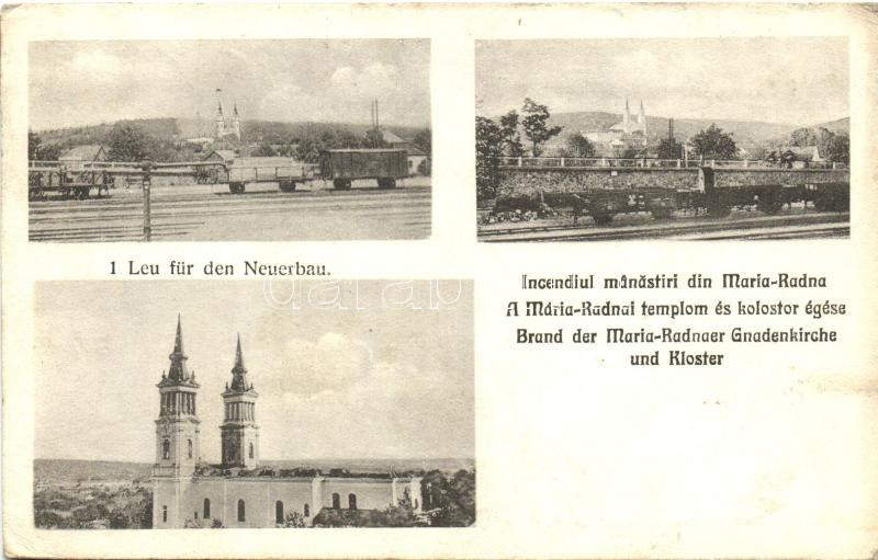 Máriaradna, templom és kolostor égése / burning of churches and monast... https://www.darabanth.com/de/219-Fernauktion/219.0/Ansichtskarten/Siebenburgen~300006/Mariaradna-templom-es-kolostor-egese-burning-of-churches-and-monasteries-railway-EK~II933636