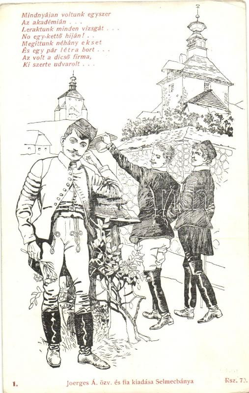 Studentika, selmeci diákélet, Tassonyi Ernő 'Aki a párját keresi' regé... https://www.darabanth.com/de/219-Fernauktion/219.0/Ansichtskarten/Studentica~500116/Studentika-selmeci-diakelet-Tassonyi-Erno-Aki-a-parjat-keresi-regenyenek-illusztracioja~II931890