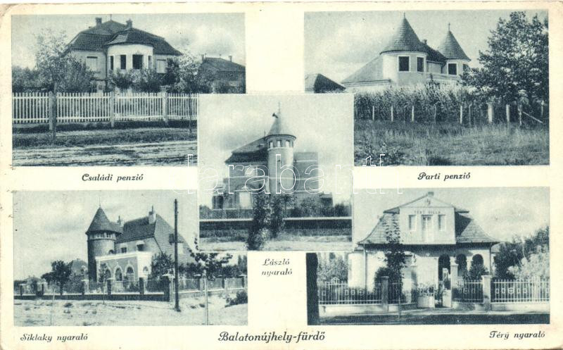 Beschreibung: Balatonújhely-fürdő, Családi és Parti penzió, Siklaky, László és Téry nyaraló (EK)