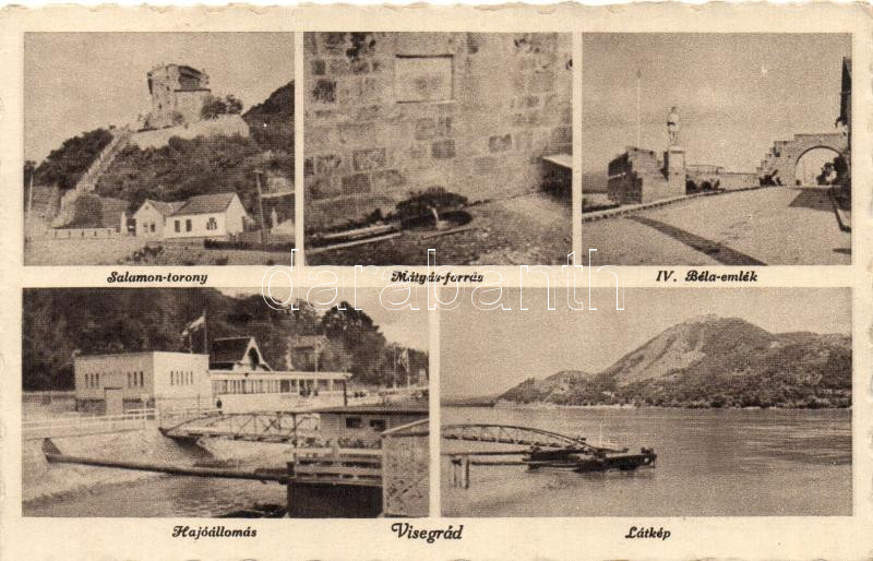 Visegrád, Salamon torony, Mátyás forrás, IV. Béla emlék, Hajóállomás (... https://www.darabanth.com/de/219-Fernauktion/219.0/Ansichtskarten/Ungarn~300005/Visegrad-Salamon-torony-Matyas-forras-IV-Bela-emlek-Hajoallomas-fl~II858509