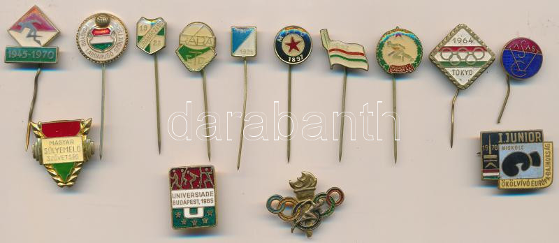 Beschreibung: 14db vegyes magyar szocialista sportjelvény, zománcozottak is T:vegyes