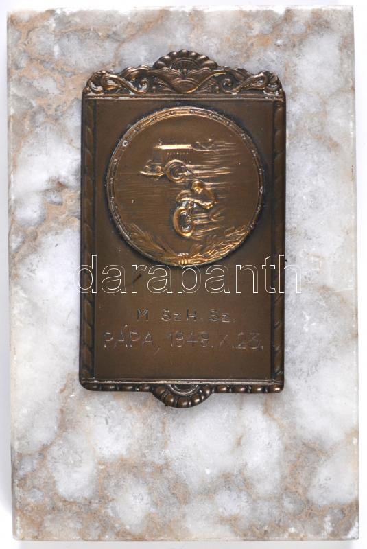 Pápa 1949. "Magyar Szabadságharcos Szövetség" motoros, autós bronz plakett márvány talapzaton "Ludvig Éremverő" gyártói jelzéssel a hátlapon T:2