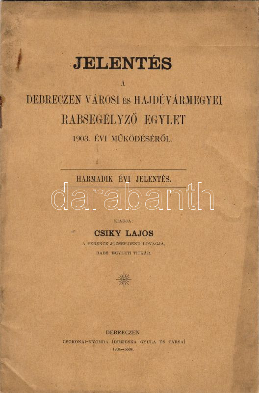 1904 Jelentés a Debreczen városi és Hajdúvármegyei Rabsegélyező Egylet... https://www.darabanth.com/de/22-Fernauktion/22.0/Andere-Sammelgebiete/~183/1904-Jelentes-a-Debreczen-varosi-es-Hajduvarmegyei-Rabsegelyezo-Egylet-jelentese-Ruzicska-G~II43170